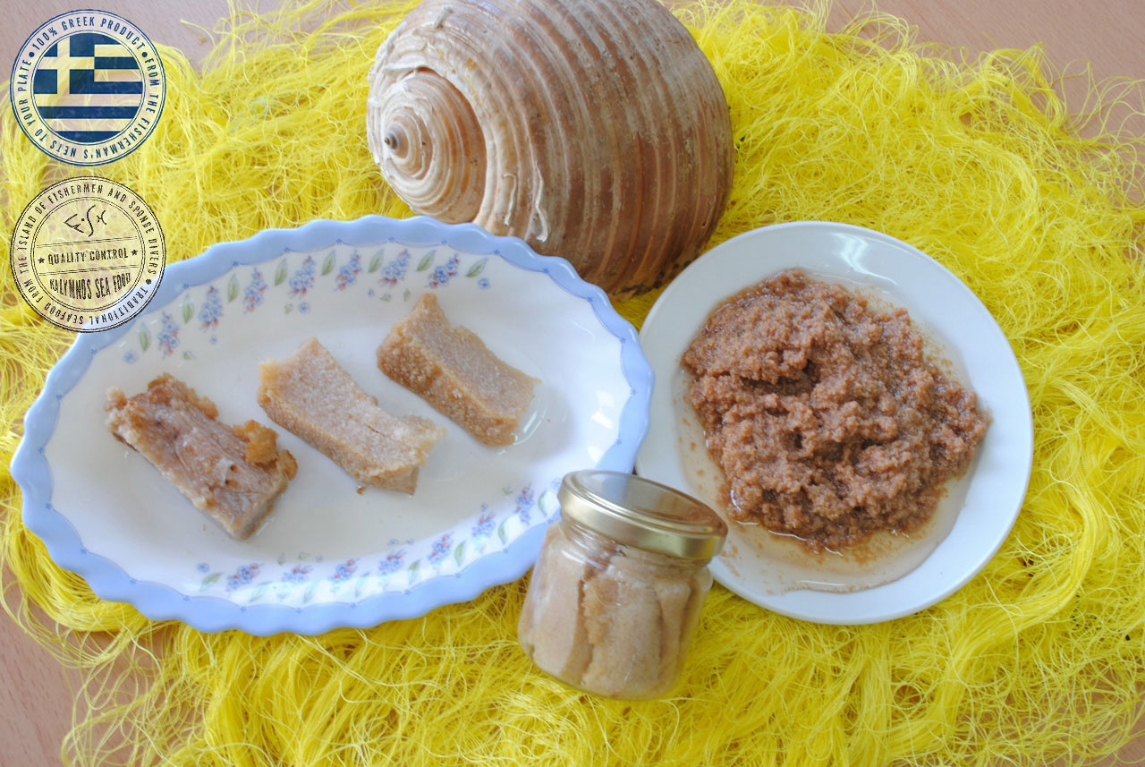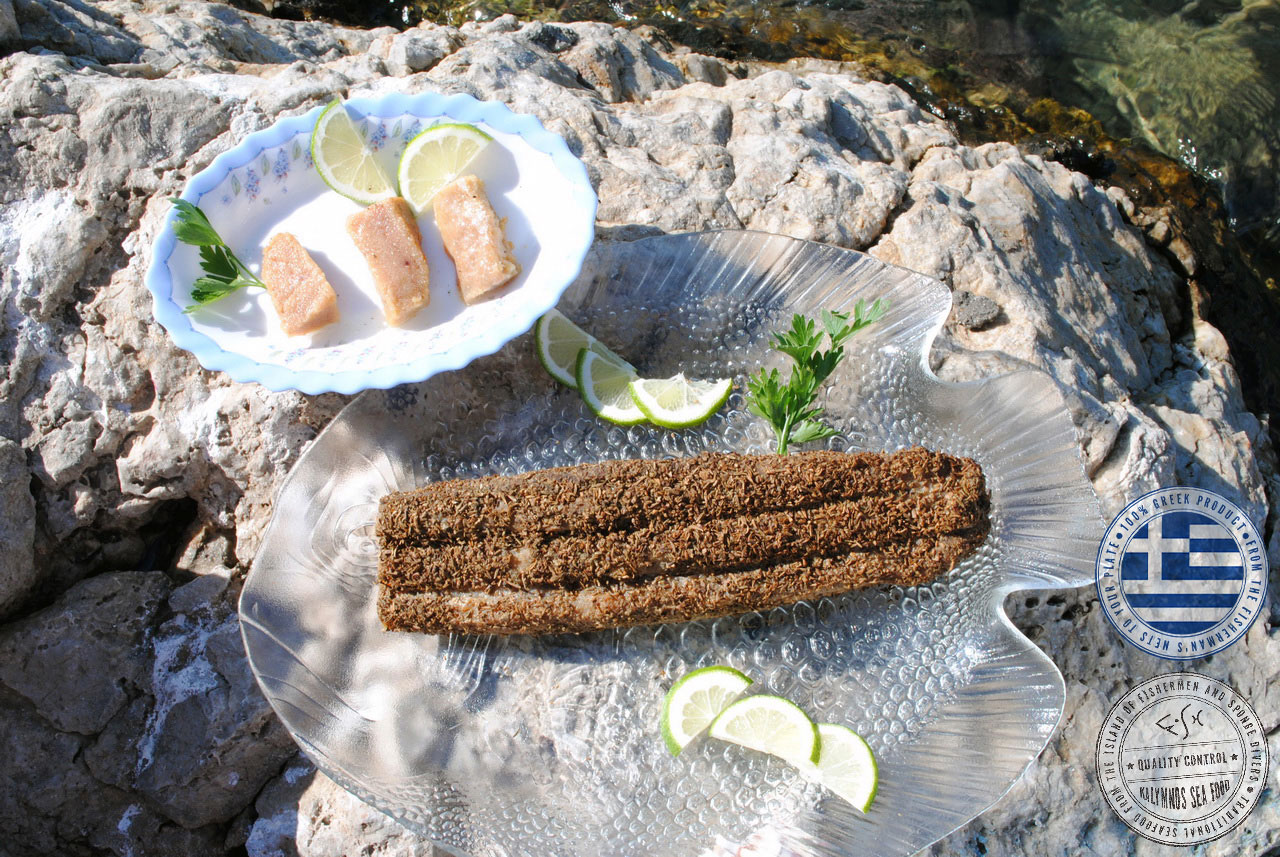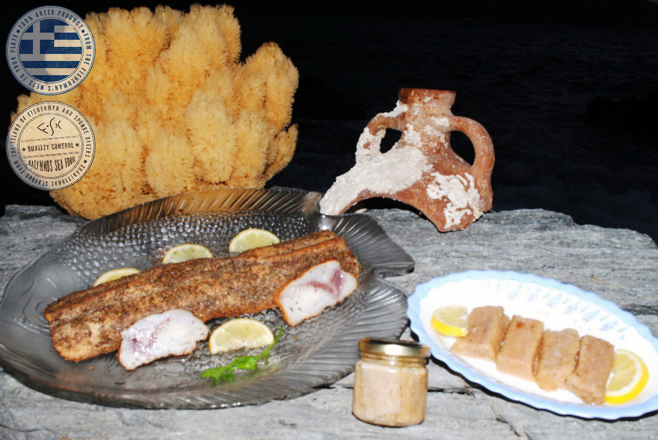 The swordfish roe is removed by the fishermen immediately after the catch while the fish is still alive, wrapped in a special membrane, tucked away in ice and delivered to our packaging facility within 12 hours. Then the fishermen’s’ women do what they do best, processing and smoking the product (thyme, savory, oregano, products from the mountains of Kalymnos) before the packaging in glass jars sealed with the vacuum method, thus ensuring that the product maintains its superior product quality, therefore creating a global originality in products of superior quality compared to roe that we know today.